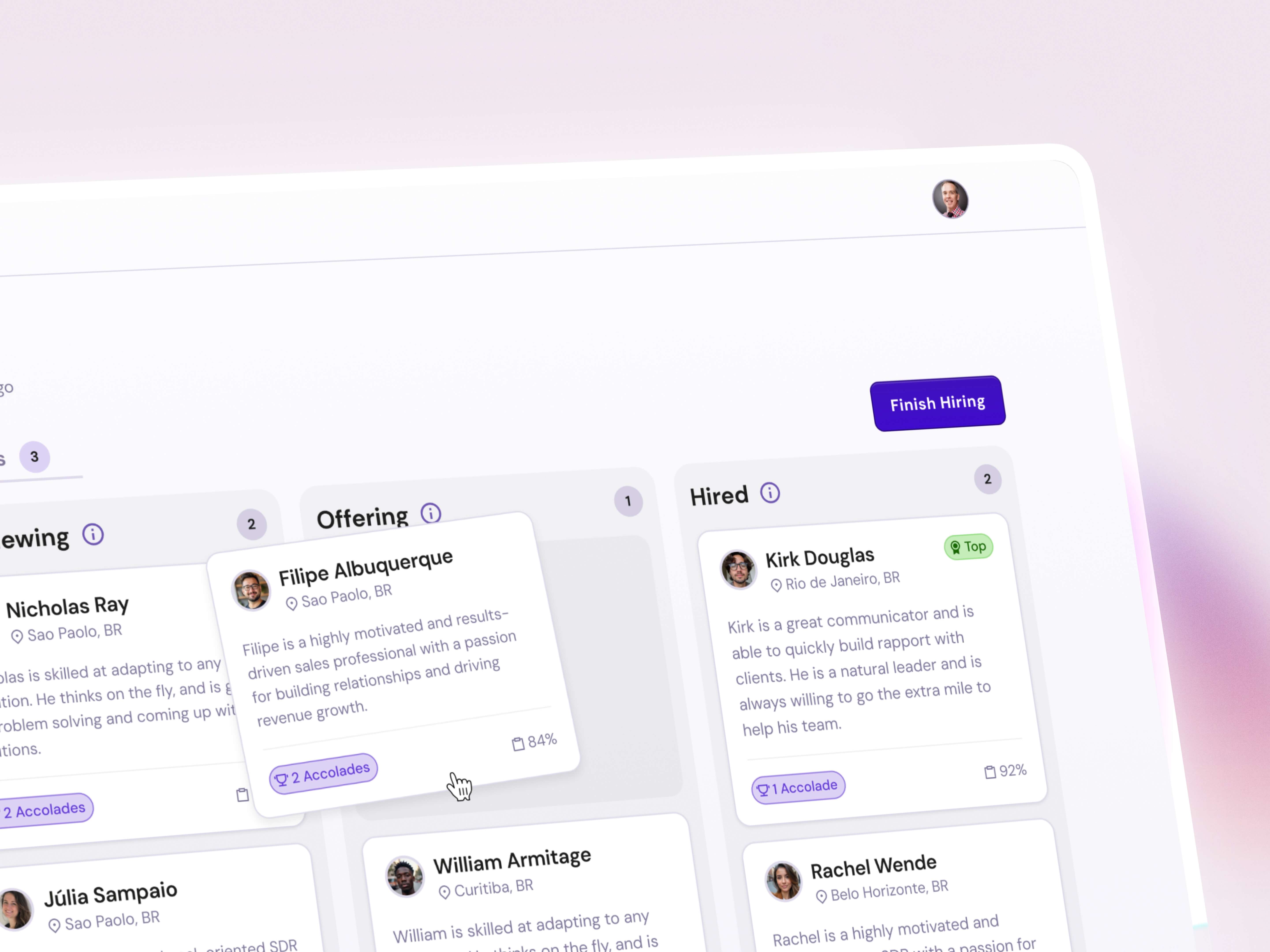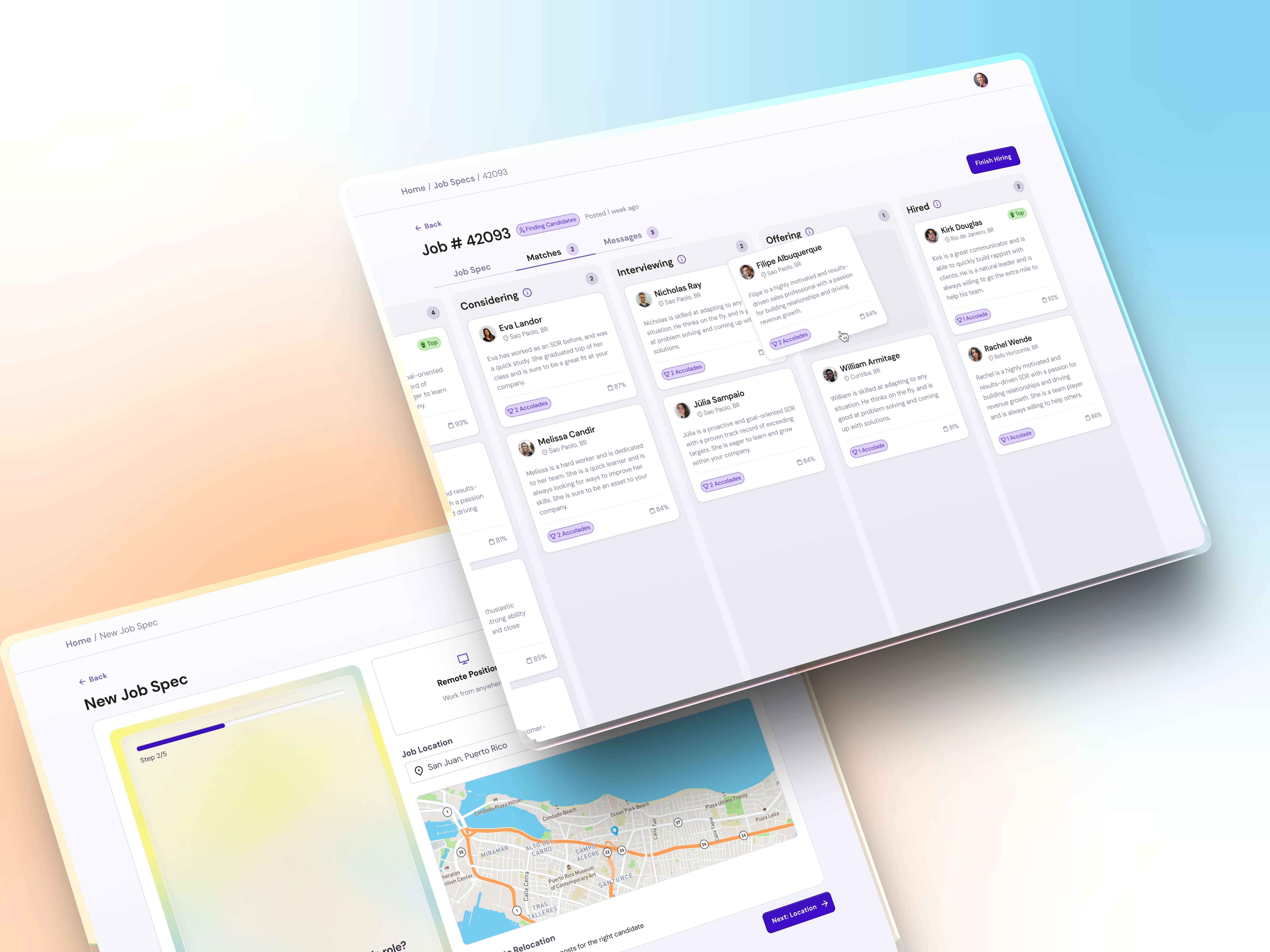I served as lead designer for the project, working embedded with Ready Hire's founding team and development partners. Beyond designing the core product experiences, I facilitated design sprints, led brand and product strategy workshops, coached junior designers, and established the complete design system that would define the platform's visual identity.
