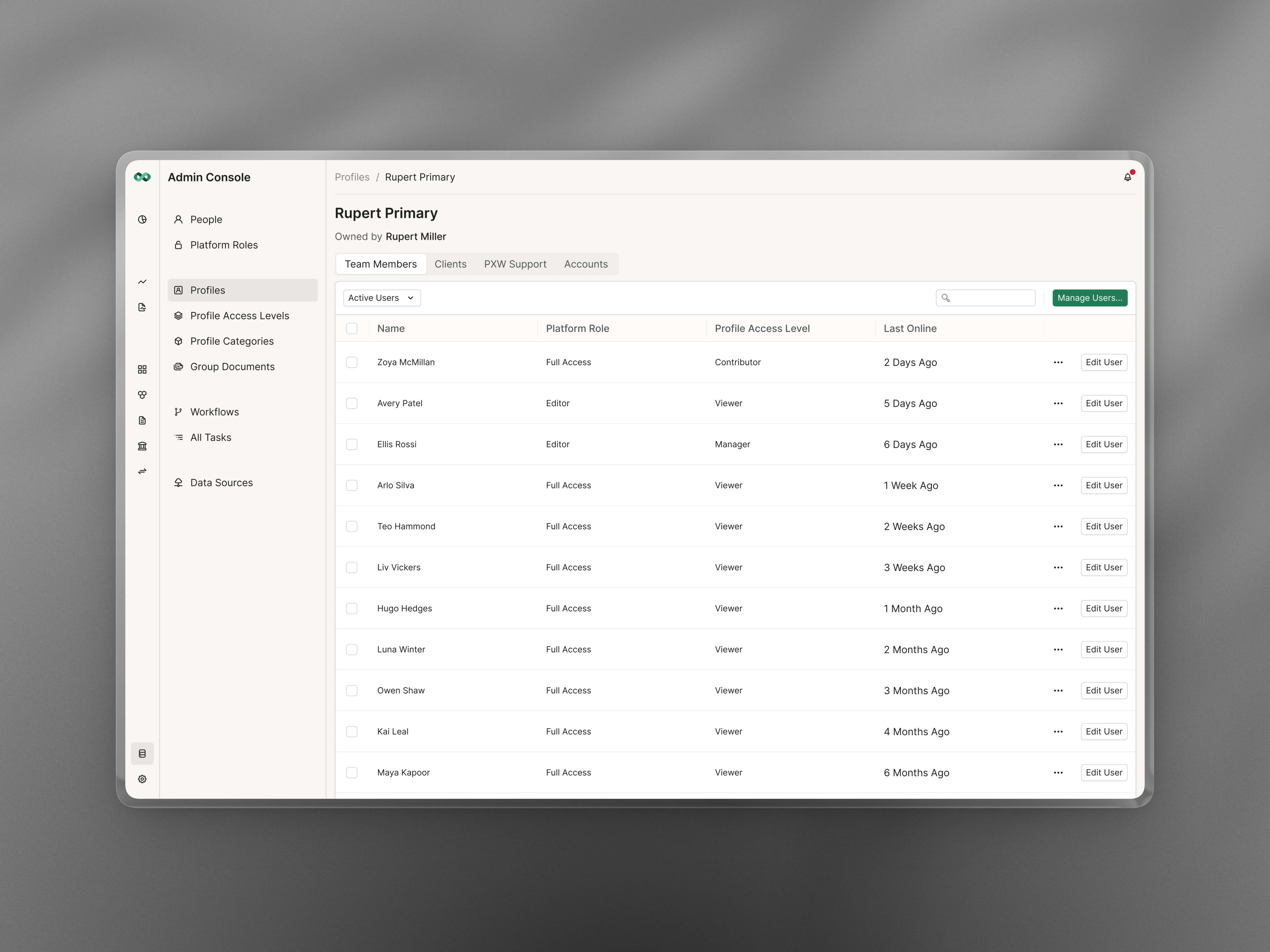 I served as principal and founding designer for PXW, establishing their product design direction and building core platform experiences from the ground up. This ongoing design partnership has spanned the full product lifecycle, from early strategic work through feature launches and continued product evolution.
